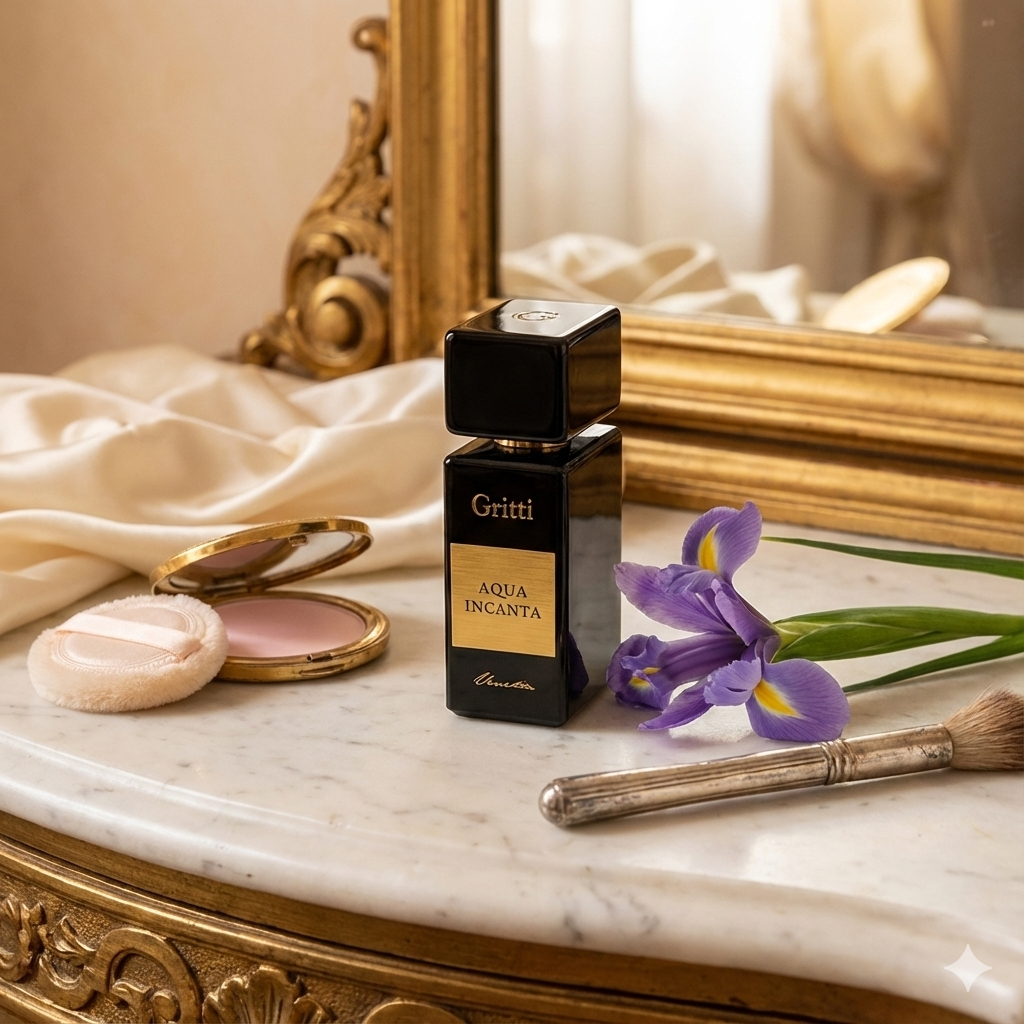 Aqua Incanta de Gritti es un homenaje a la feminidad elegante y sofisticada. Parte de la Black Collection, esta fragancia lanzada en 2012 es una oda al preciado iris florentino, capturando su aroma suave y polvoriento en una composición que evoca la magia y la seducción de un lápiz labial de lujo. Es un aroma que envuelve los sentidos con una gracia atemporal.
