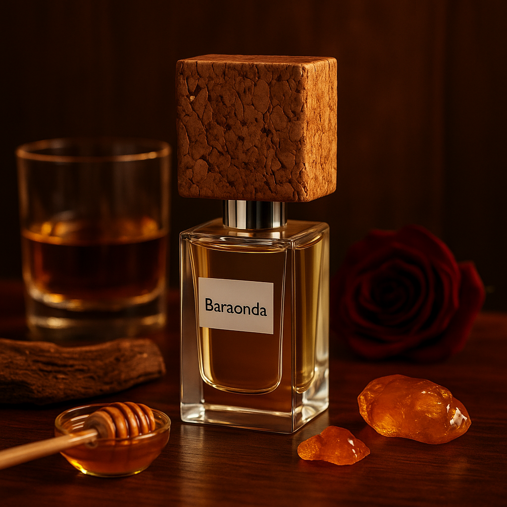 Baraonda de Nasomatto es una fragancia embriagadora e intensa que celebra el poder del alcohol, la madera y la calidez humana. Su aroma evoca el ambiente de un bar elegante, lleno de historias, humo y risas. Desde la primera vaporización, se percibe un acorde de whisky puro y ámbar, acompañado por un fondo de maderas secas, almizcle y rosa que aportan equilibrio y profundidad. Es un perfume que abraza el exceso con elegancia y sensualidad, ideal para almas libres, creativas y provocadoras.