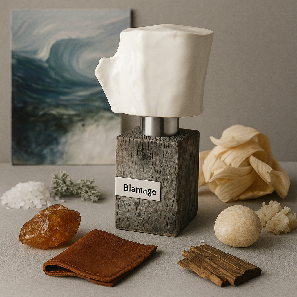 Blamage es una fragancia experimental y provocadora de Alessandro Gualtieri, creador de Nasomatto. El nombre significa “equivocación” o “error” en francés, y refleja la idea de un perfume nacido del azar. Es un perfume atrevido, amaderado y especiado, con un carácter intrigante que combina maderas blancas, cuero y notas animales en una composición inesperada y arriesgada.