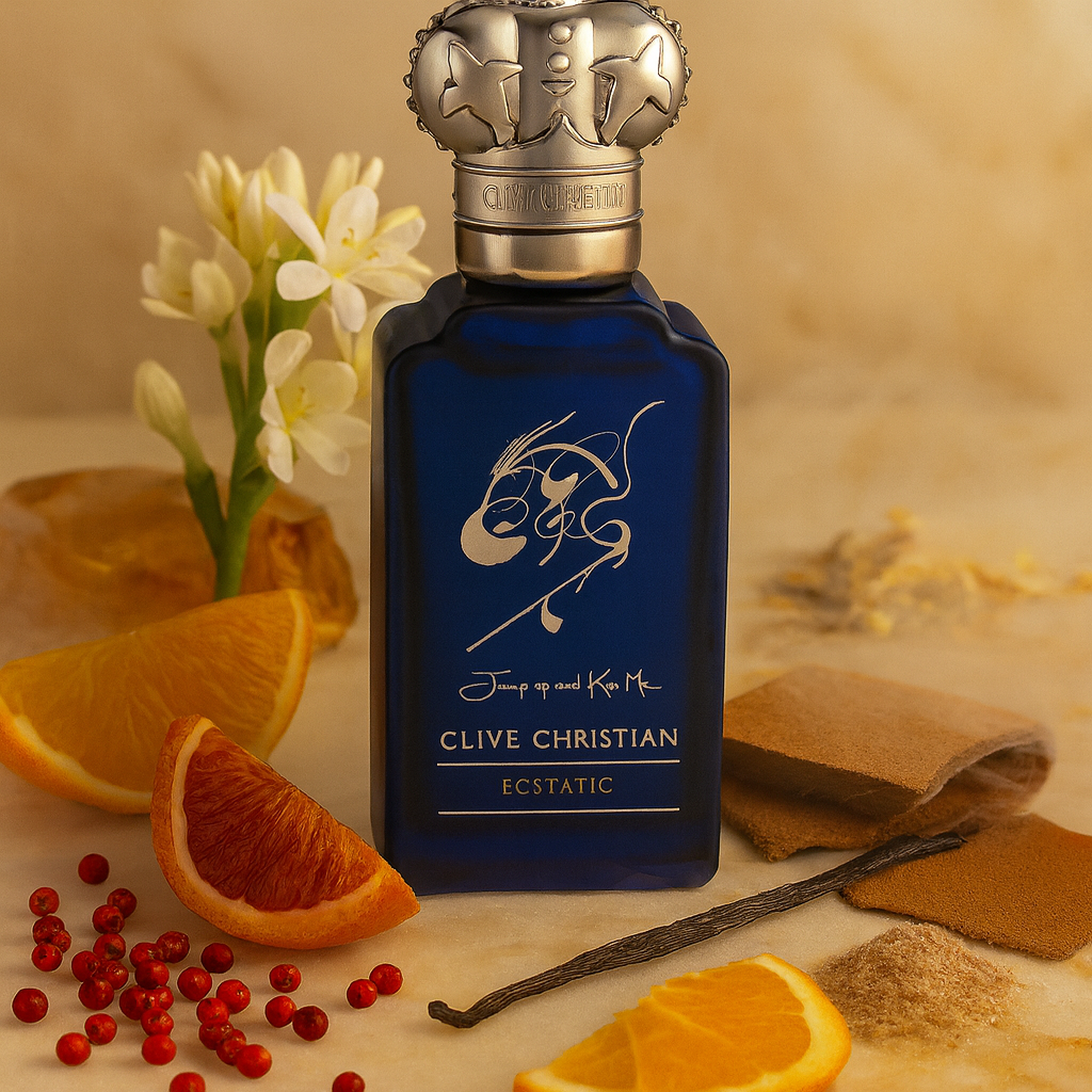 Jump Up And Kiss Me Ecstatic de Clive Christian (Addictive Arts) es un perfume floral-ámbar de sensualidad luminosa: una tuberosa protagonista, cremosa y nocturna, envuelta por cítricos amargos y un fondo cálido que se siente “piel de lujo”.