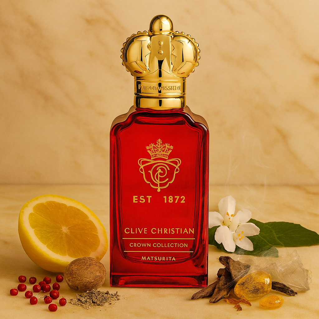 Matsukita de Clive Christian es una fragancia amaderada chipre de carácter elegante y enigmático, inspirada en un aura de refinamiento clásico con un giro moderno. Arranca con una salida luminosa y especiada donde la bergamota aporta frescura verde, la pimienta rosa vibra con un picor suave y la nuez moscada suma calidez.