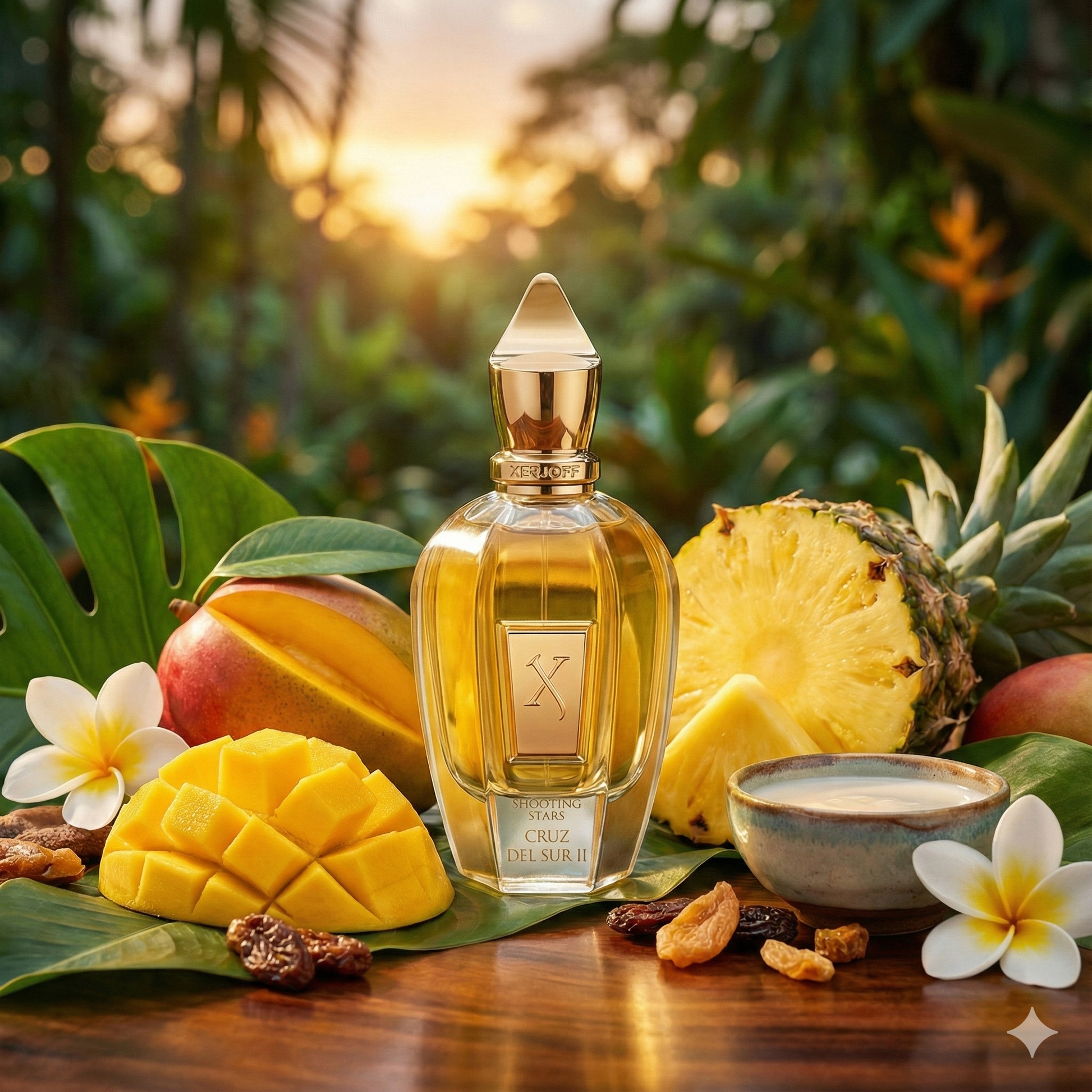 No es un perfume frutal común; es una composición gourmet sofisticada y envolvente. Cruz del Sur II equilibra la dulzura jugosa de las frutas tropicales más selectas con un fondo sorprendentemente cremoso y lácteo, apoyado por maderas nobles. Es el aroma de unas vacaciones de lujo en un destino exótico y exclusivo.